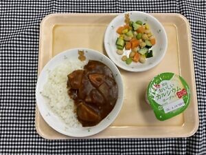今日のメニューは、〇ハヤシライス 〇ビーンズサラダ 〇ヨーグルトです。