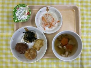 今日のメニューは、〇お餅 〇大根とにんじんのなます 〇お雑煮風 〇ヨーグルトです。